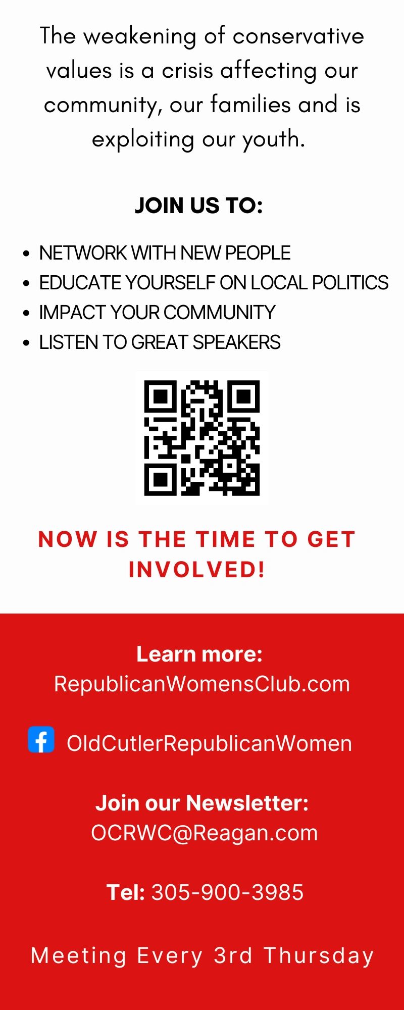 Started in 1980 we are the oldest Republican Club in Miami. We meet every 3rd Thurs.